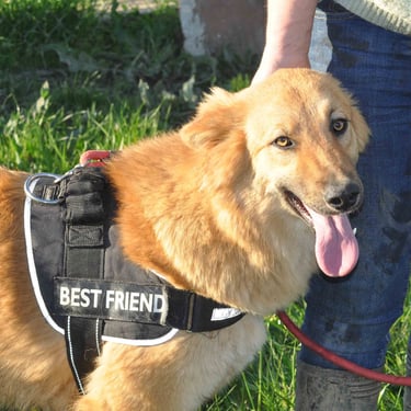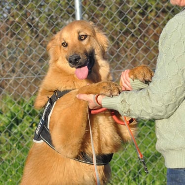 Bella es una preciosa perrita mestiza de tamaño grande, que fue recogida con apenas 3 meses, junto a sus hermanos Xena y Arco. Nacieron en mayo de 2025. Aún no ha sido esterilizada